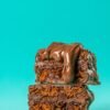 Massa de pão de mel molhadinha recheada com doce de leite e coberto com chocolate.